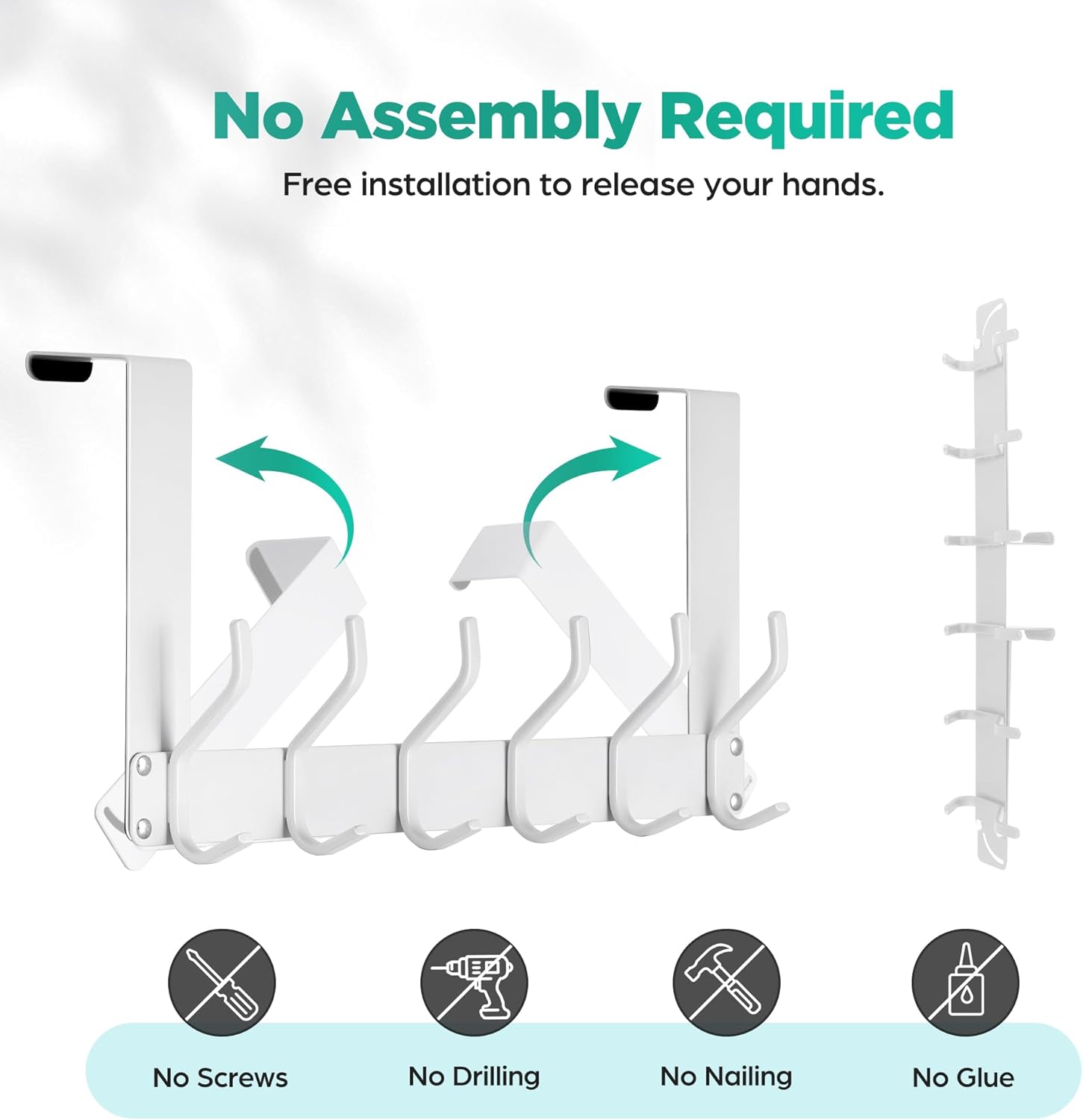 • NO ASSEMBLY REQUIRED: These hooks are designed to be truly hassle-free, eliminating the need for any installation. Simply hang them over the door, and they're ready to use.