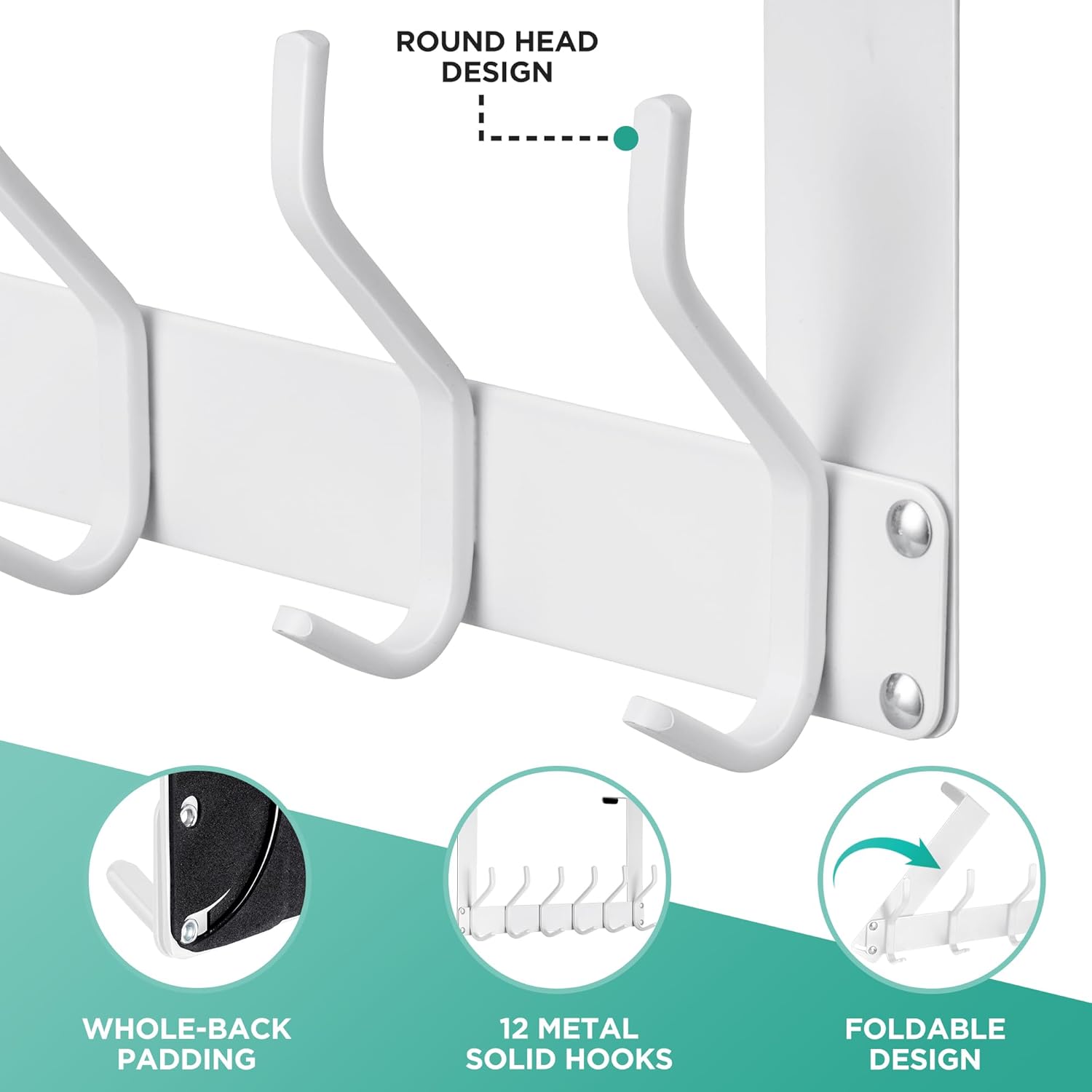 Over The Door Hooks: Door Hanger Hooks for Hanging, Over Door Towel Racks for Bathroom with 12 Coat Hook, White