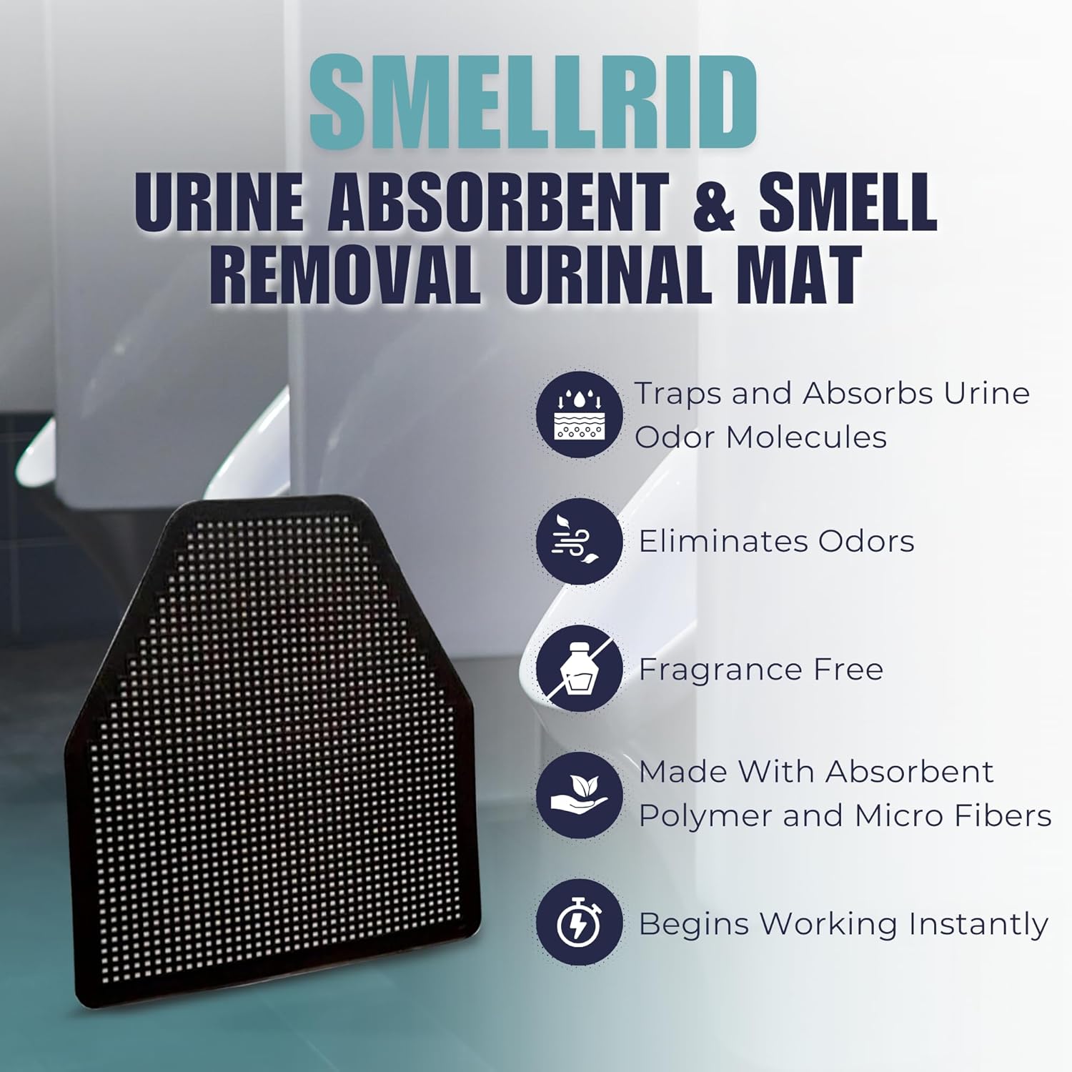 SmellRid Urine Absorbent & Odor-Control Splash Pad for Urinals for Men – Bathroom Mat for Smell Removal, Non-Slip Bathroom Mats, - Urinal Pads - 17.5 x 20.5 Inches – Pack of 6